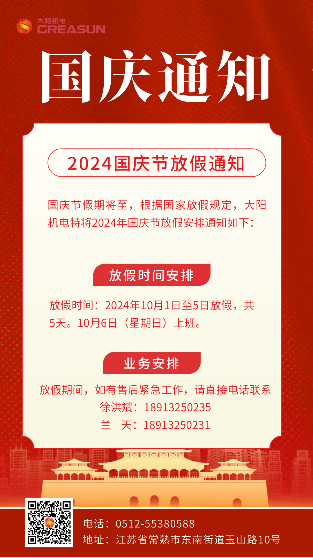 【放假通知】大陽(yáng)機(jī)電國(guó)慶放假時(shí)間安排