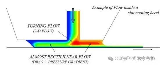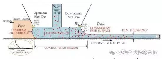 Slot Die涂布工藝中流體會涉及到壓力,粘彈力,慣性力,表面張力等,在各種力的作用下,整個流體系統(tǒng)達到一平衡,形成穩(wěn)定的涂布過程。