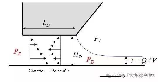 我一直認為模頭涂布過程中的流體模型是一個比較復(fù)雜的模型,因為它涉及到比較多的不同界面的分析。如下圖: