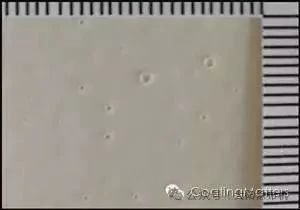 由于在涂布過程中涂布基材由于受到較低表面張力的物體的污染, 如油滴,灰塵等,而使污染物周圍的涂布溶液流向較高表面張力的方向,形成了像火山口一樣的缺陷。如果污染物是在涂布之前就已經(jīng)存在在基材上了,則會形成類似于針孔一樣的缺陷。