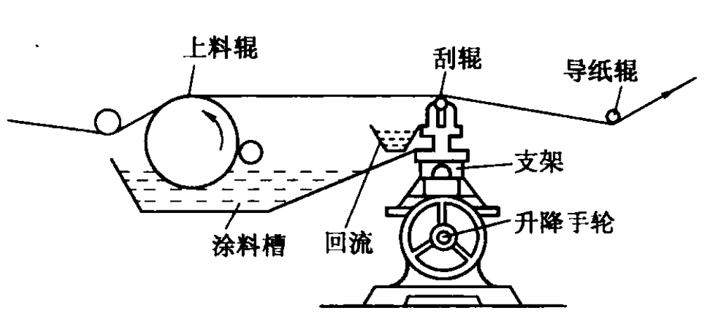 用于氣刀涂布機(jī)的涂料固含量較低,對原紙的濕強(qiáng)度有較高的要求,干燥部的負(fù)荷也較大,同時(shí)限制了車速的進(jìn)一步提高。氣刀涂布紙的涂層保留原基材表面的輪廓,因此要求原紙的平滑度不能太低。氣刀涂布機(jī)車速較高時(shí),隨著氣刀風(fēng)壓增高、風(fēng)量增大,飛漿的問題將會(huì)變得嚴(yán)重,因此回流槽設(shè)計(jì)應(yīng)合理。