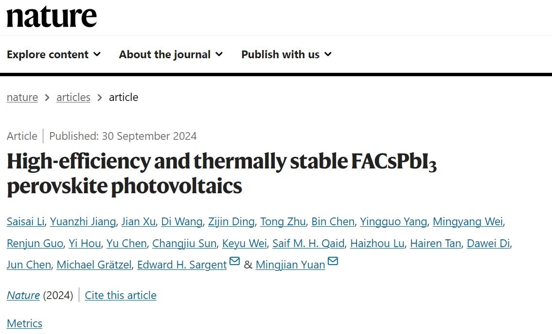 鈣鈦礦太陽(yáng)能電池,又一重大突破!