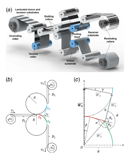 單個(gè)跨段中黏彈性卷材的行為可以用彈性模型來描述,但在多跨段系統(tǒng)中,這種預(yù)測與實(shí)際情況存在顯著差異。因此,大型、高精度的R2R系統(tǒng)中多跨段黏彈性至關(guān)重要。例如,在R2R干法轉(zhuǎn)移系統(tǒng)中,黏彈性可能導(dǎo)致薄膜剝離過程中的粘滑現(xiàn)象,給控制設(shè)計(jì)帶來巨大挑戰(zhàn)。因此,在高級應(yīng)用中必須充分考慮黏彈性效應(yīng)。05