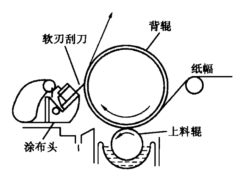 用于氣刀涂布機(jī)的涂料固含量較低,對原紙的濕強(qiáng)度有較高的要求,干燥部的負(fù)荷也較大,同時(shí)限制了車速的進(jìn)一步提高。氣刀涂布紙的涂層保留原基材表面的輪廓,因此要求原紙的平滑度不能太低。氣刀涂布機(jī)車速較高時(shí),隨著氣刀風(fēng)壓增高、風(fēng)量增大,飛漿的問題將會(huì)變得嚴(yán)重,因此回流槽設(shè)計(jì)應(yīng)合理。